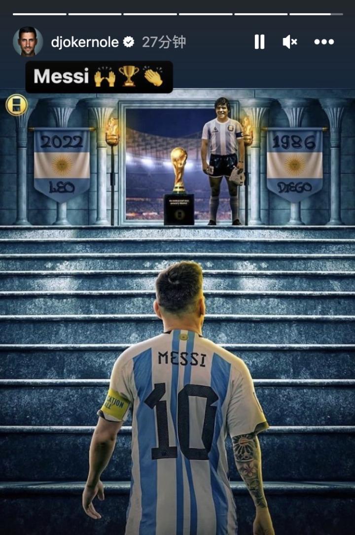 网坛名将德约科维奇更新社交媒体,庆祝梅西获得世界杯冠军。