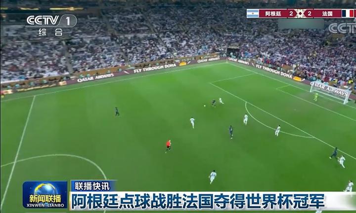 阿根廷获得卡塔尔世界杯冠军,获新闻联播50秒报道。