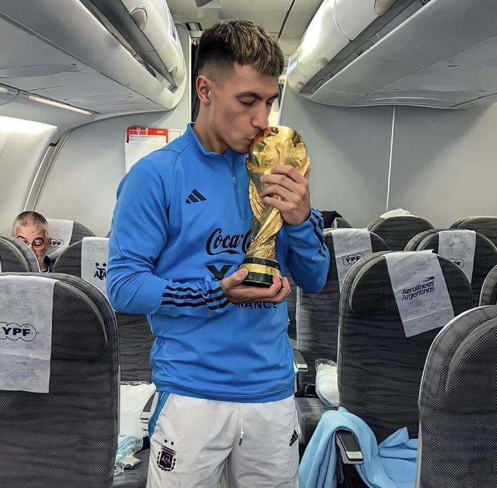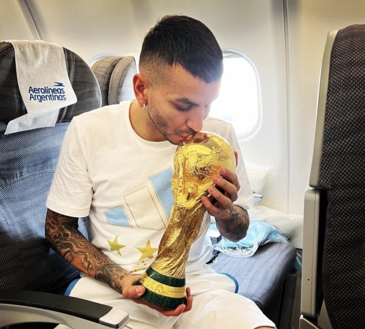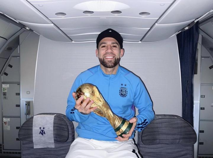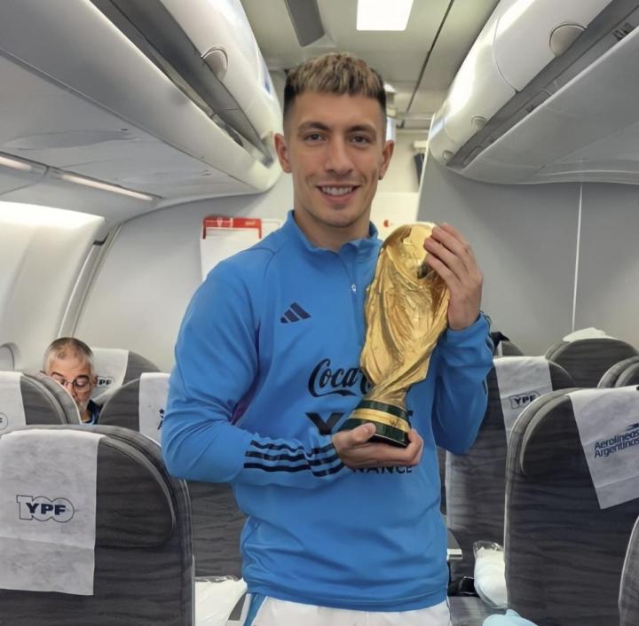 在世界杯夺冠后新的一天,阿根廷多名球员在社交媒体上晒出了与大力神杯的合照。