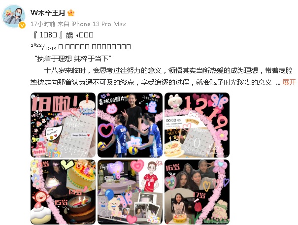 同一天,来自江苏女排的18岁小将万梓玥也在社交平台晒出了自己的庆生照,并留下了一段对于成年的感悟,她写道:“ 十八岁来临时,会思考过往努力的意义,领悟其实当所热爱的成为理想,带着满腔热忱走向那曾认为遥不可及的终点,享受追逐的过程,就会赋予时光珍贵的意义与价值。哪怕结果不尽如人意,挥洒过的青春也能烙下深刻印痕。”