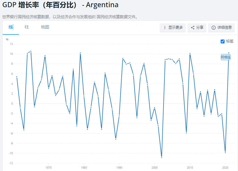 阿根廷GDP增长率(图片来源:世界银行)
