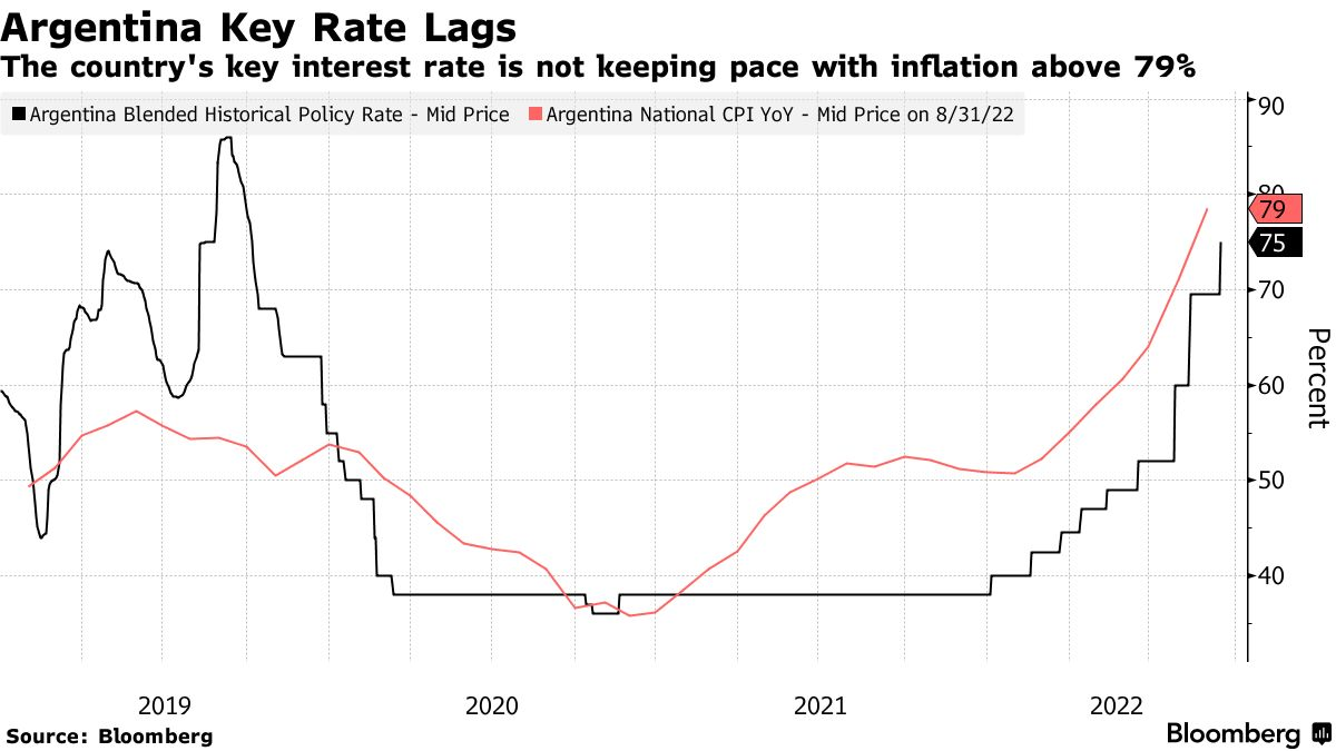 阿根廷关键利率走势(图片来源:彭博社)