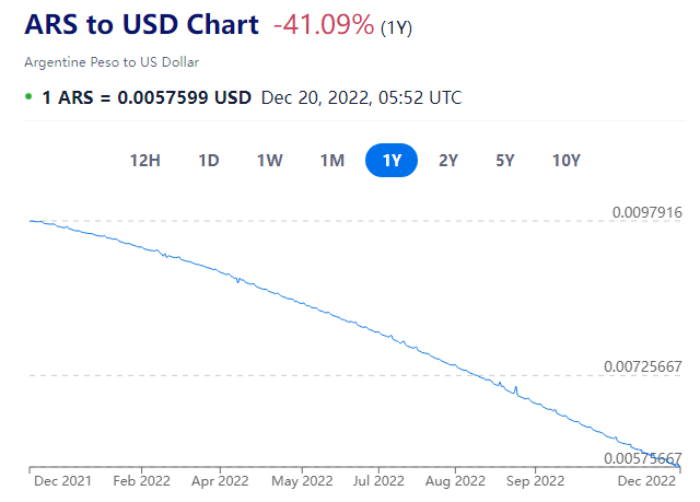 阿根廷比索兑美元跌至历史低点(图片来源:XE)