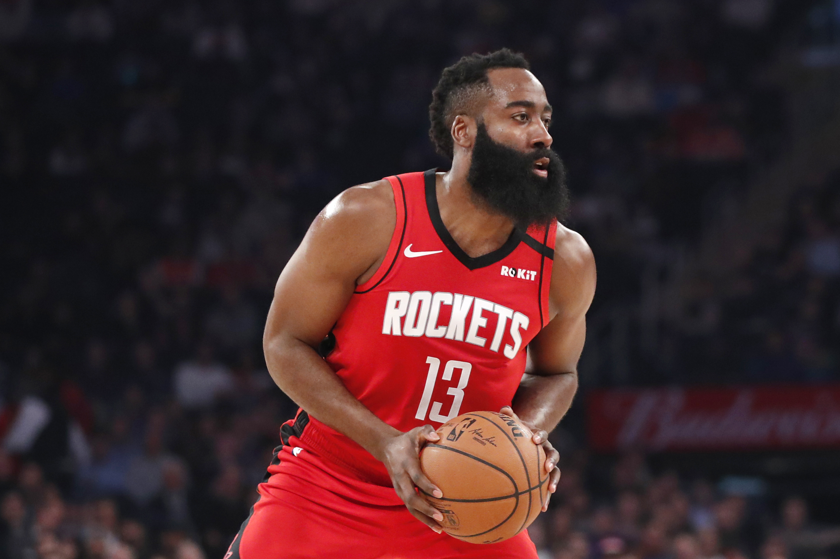 当哈登是后场的最佳核心,不会有球员来和他争夺球权的时候,哈登的发挥才真正像一个历史级别的双能卫。