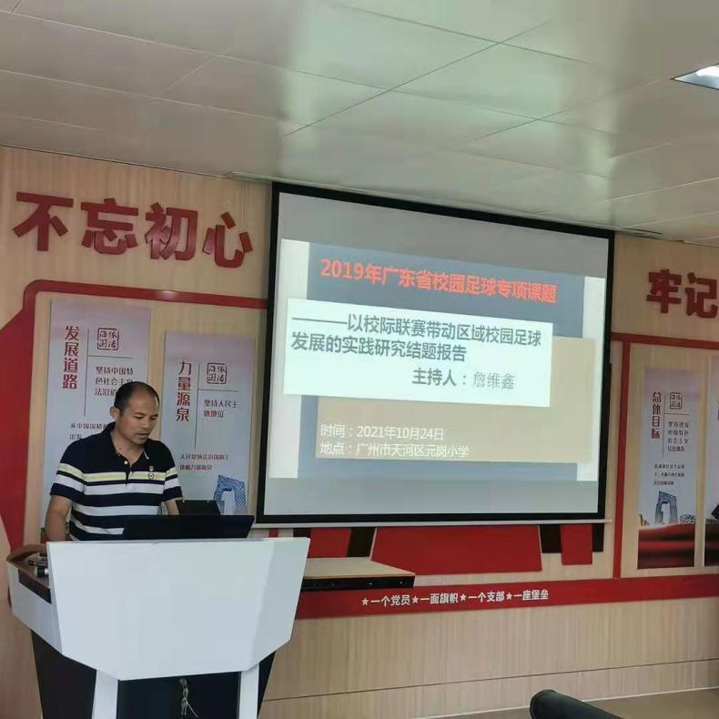 广州市天河区元岗小学校长詹维鑫是广州市优秀校园足球干部,现任天河区校园足球办公室执行副主任、天河区校园足球分会副会长。多年来,一直致力于天河区校园足球的发展,每年组织天河区中小学生足球赛,以及校园足球相关活动。