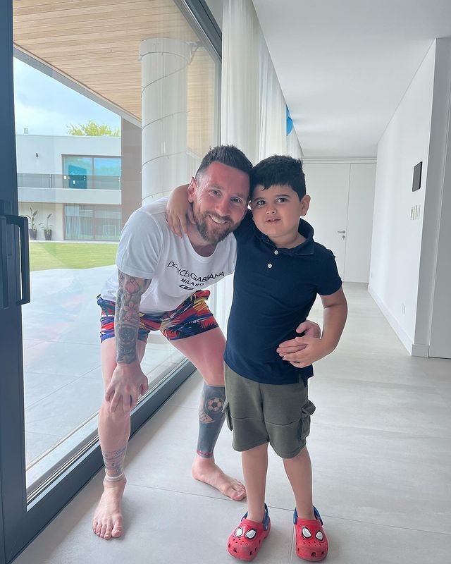 今日,前阿根廷国脚马斯切拉诺晒出他5岁的儿子和梅西的合照,并配文:“感谢朋友。”