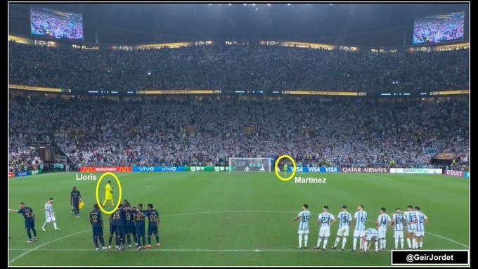 点球大战开始之前,作为法国队队长的洛里需要去参加挑边仪式,达米安-马丁内斯则是抢先来到球门前等着洛里,那种感觉就像是主人在欢迎客人,仿佛在说:“欢迎来我家。”