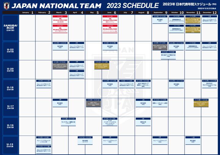 北京时间12月23日,日本公布2023各级别国家队年度计划,其中日本队将在3月和6月进行麒麟杯友谊赛,9月赴海外拉练。