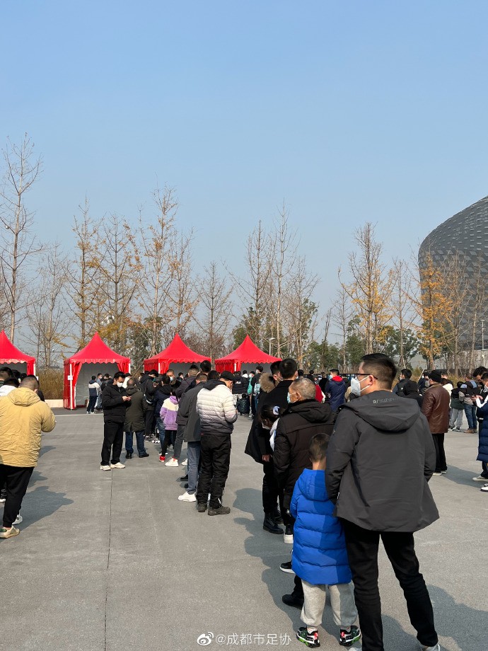 12月23日,成都蓉城迎来凤凰山主场首秀,而不少球迷从中午开始就已经去排上了队等待购票。