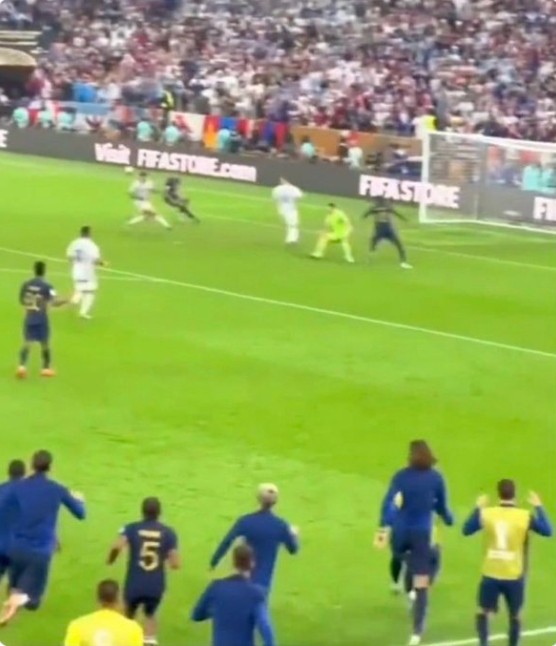 马齐尼亚克亮出了自己的手机,上面是一张照片,他说:“法国人没有提到这件事情,这张照片显示当姆巴佩进球前场上有7名法国替补队员。”