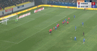 第33分钟,谢鹏飞开出左侧角球,高准翼抢前点头球攻门击中立柱!