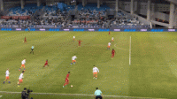 第4分钟,陈蒲左路连续摆脱后射门,球偏出球门。