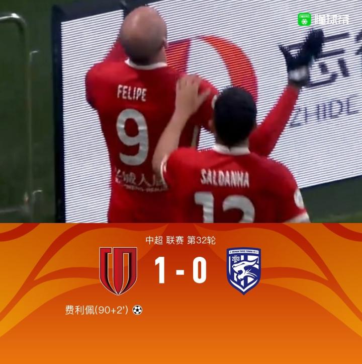 北京时间12月23日20:00,中超第32轮继续进行,成都蓉城坐镇主场凤凰山专业足球场迎战武汉三镇,本场主裁判为石祯禄,VAR裁判为王巍。上半场,萨尔达尼亚开场两连击造险,高准翼头球攻门中柱。下半场,马尔康任意球中楣,费利佩替补献绝杀。最终,三镇客场0-1不敌成都,以6个净胜球优势继续领跑。