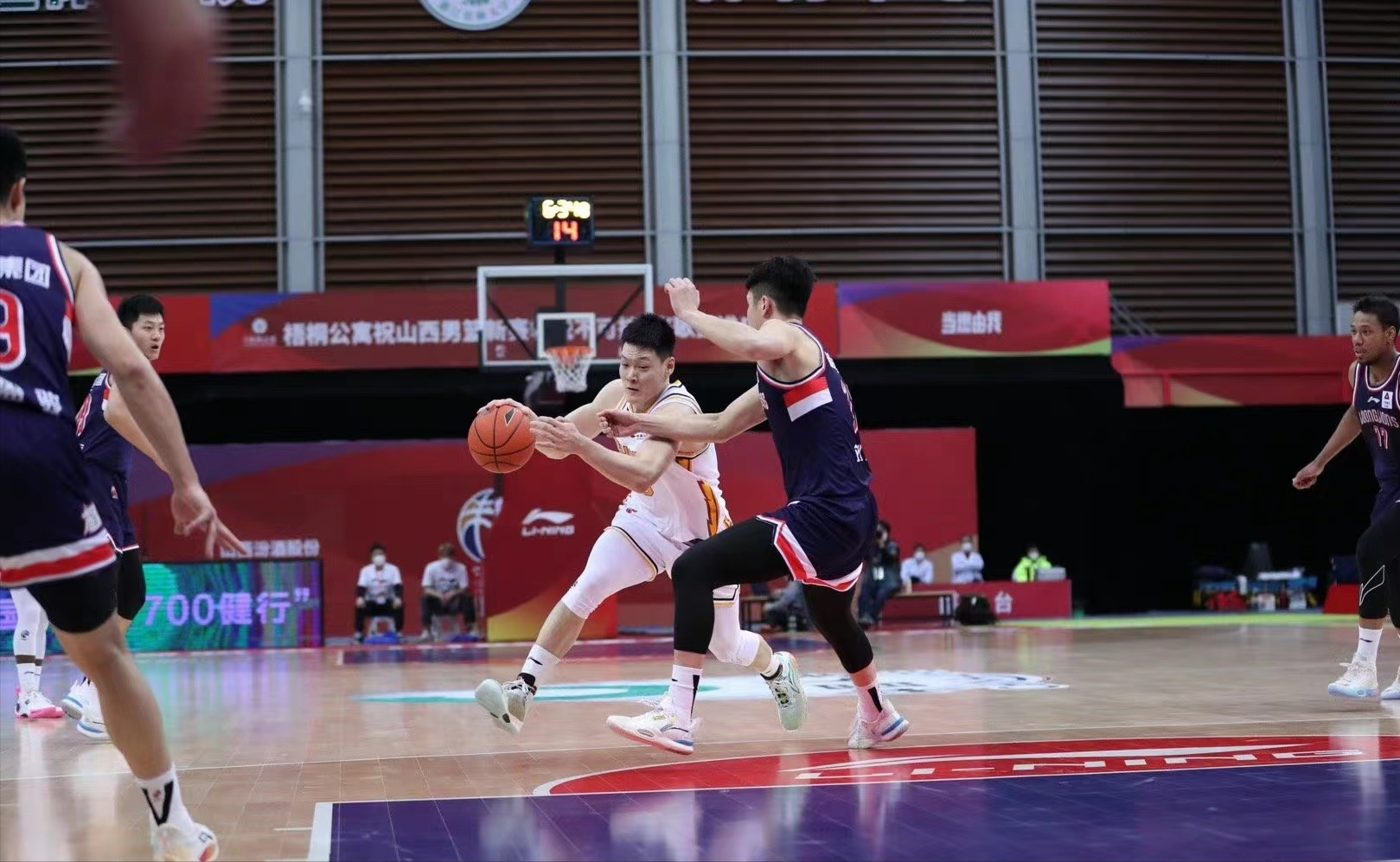 山西男篮本场比赛球队的状态明显并未达到最佳,其中原帅缺阵,球队外线缺少重要火力输出点,上半场比赛全队状态并不理想,在第二节单节被对手打出38-26的进攻高潮,张宁在球场上的状态明显存在一定的影响,但是依旧利用个人赛场的拼劲与冲击力,在篮下不断制造杀伤,个人半场比赛得到8分,帮助球队不断缩小比分劣势。