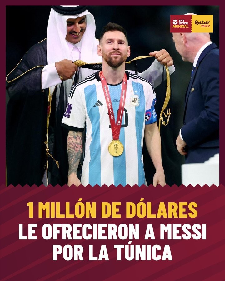 据阿根廷媒体“TNT Sports”报道,阿曼的一位议员出价100万美元(约合699万元人民币),希望购买梅西在捧起大力神杯时所穿的Bisht。