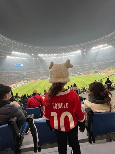 罗慕洛还晒出了自己的女儿在现场看球的照片,小女孩穿着10号球衣,十分娇小可爱。