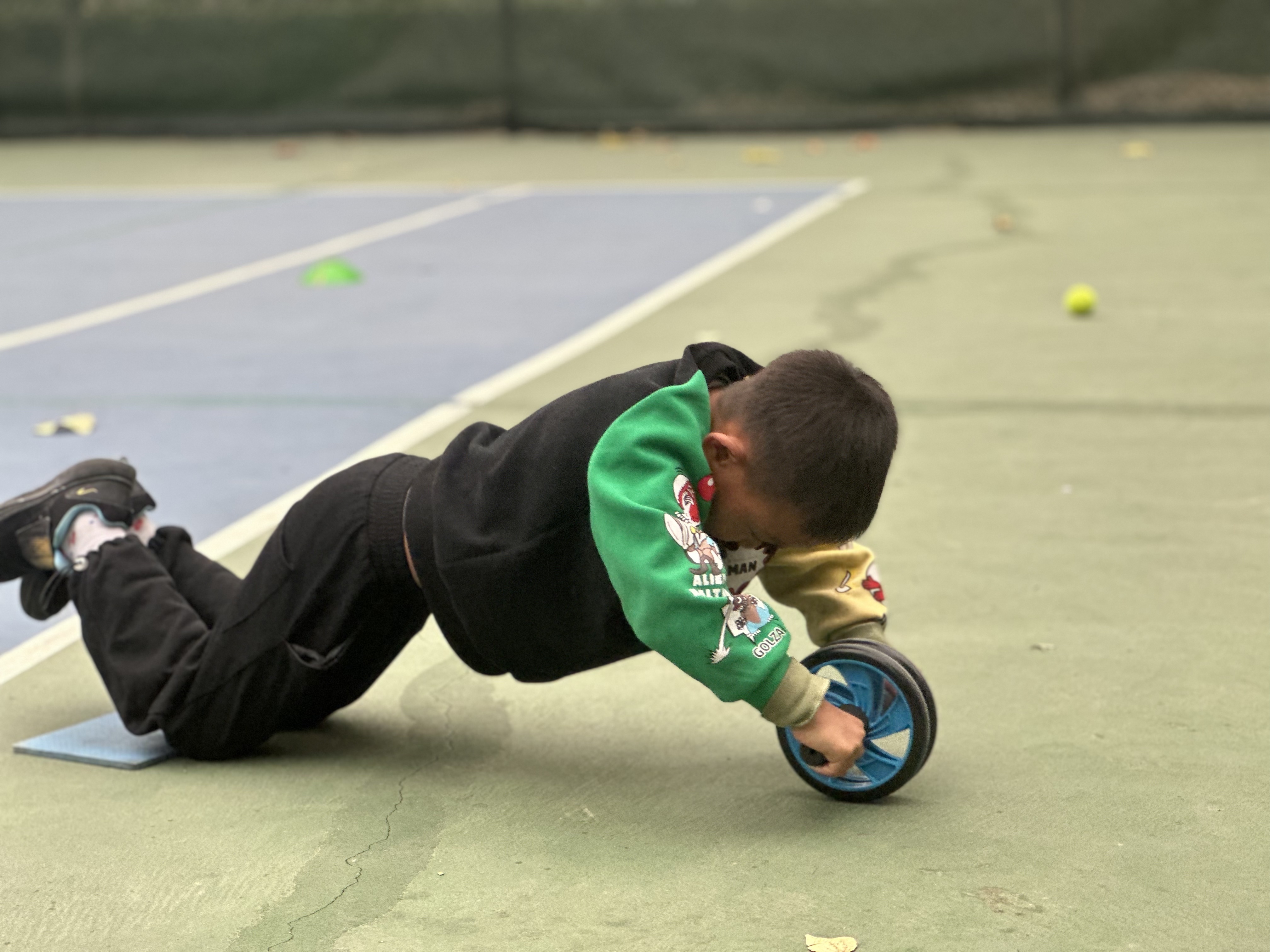 今年9月,王发的弟弟6岁的王艺也来到廊坊野象网球俱乐部参与训练,