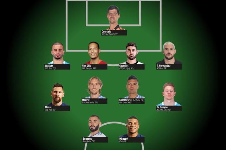 《队报》评选了2022年年度最佳阵容,姆巴佩、梅西领衔,欧冠冠军皇马成为大赢家,共计4名球员入选。