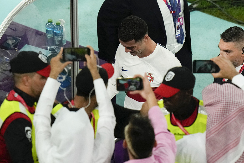 但转折来得太快了,1/4决赛中,葡萄牙0-1爆冷负于摩洛哥,世界杯之旅就此结束。我们可以看到,主裁判吹响比赛结束的哨声后,C罗跪地流泪,在走回更衣室的路上,他无法抑制住伤感,一直在用手抹泪。从背影望去,走廊的尽头已是未知的远方。