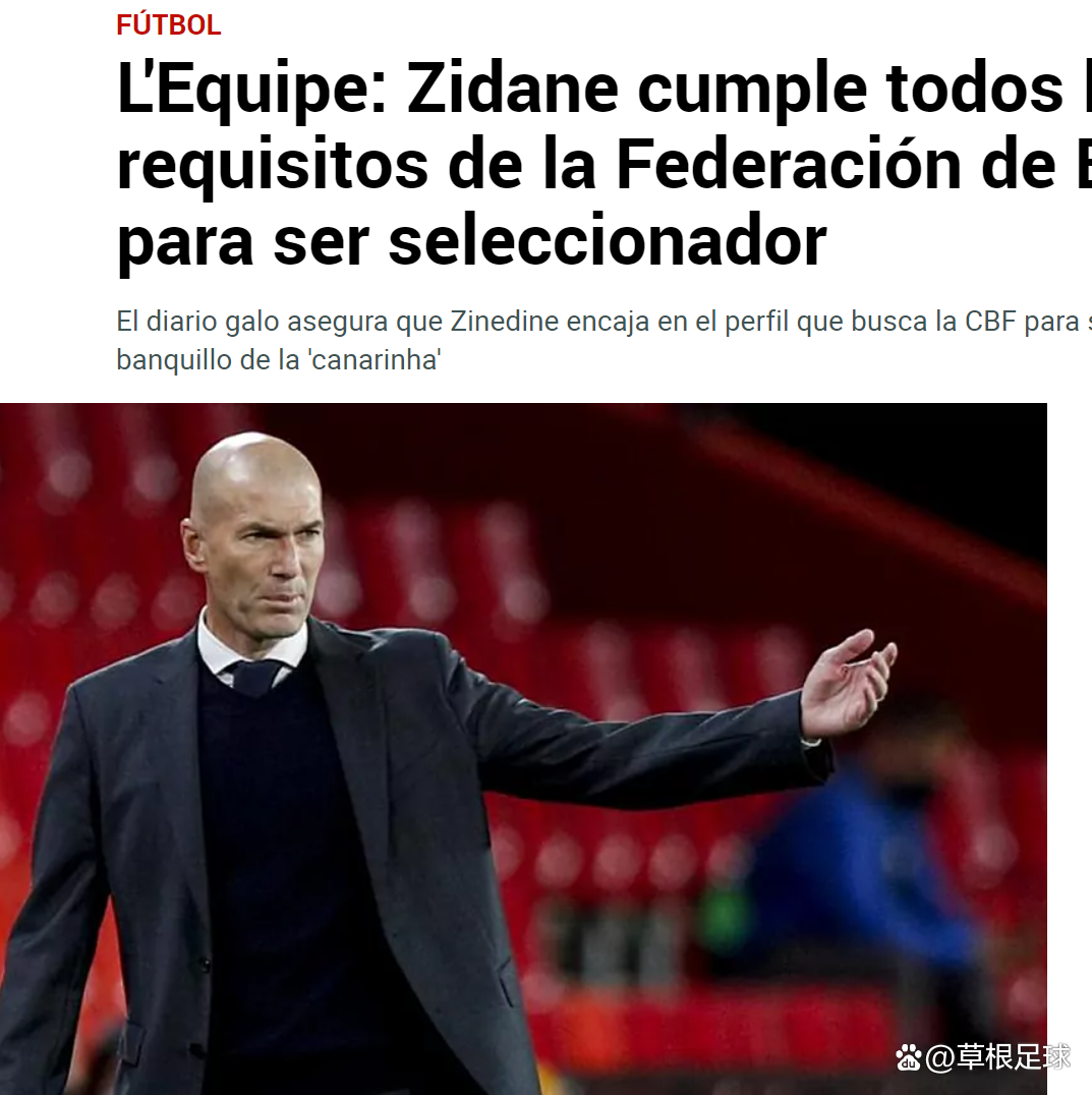 蒂特在兵败世界杯后辞职,巴西队主帅的位置空缺,足协方面不排除聘请外籍教练,包括瓜迪奥拉、安切洛蒂、穆里尼奥等世界名帅都与巴西队帅位扯上了关系。法国《队报》认为,齐达内将是巴西队主帅的梦幻人选,他符合这个位置的所有要求。