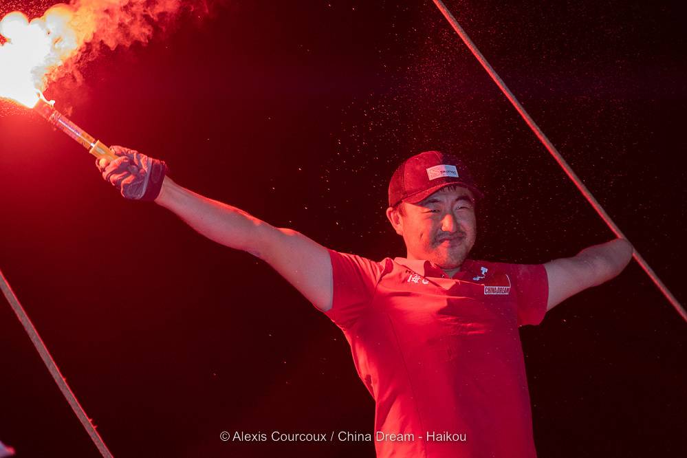 当“海口号”穿越终点线的那一刻,徐京坤激动地唱了起来,很快便成为了港口华人们的大合唱:“在我心中,曾经有一个梦……”音乐萦绕,当地华人华侨代表带着国旗来到现场助威,一起喊出“中国力量,值得被世界看见”。