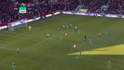 整个上半场比赛热刺形同梦游,球队有威胁的进攻不多,只能依靠孙兴慜在外围打远射,比赛基本被布伦特福德所掌控,孔蒂要在更衣室里想想办法了。第51分钟,佩里西奇左路传中,远点包抄的凯恩被抱摔放倒,但裁判没有理会。第54分钟,戴尔解围踢跐送角球,姆贝莫传中,诺尔高前点甩头攻门,托尼门前近距离撞射得手,2-0!