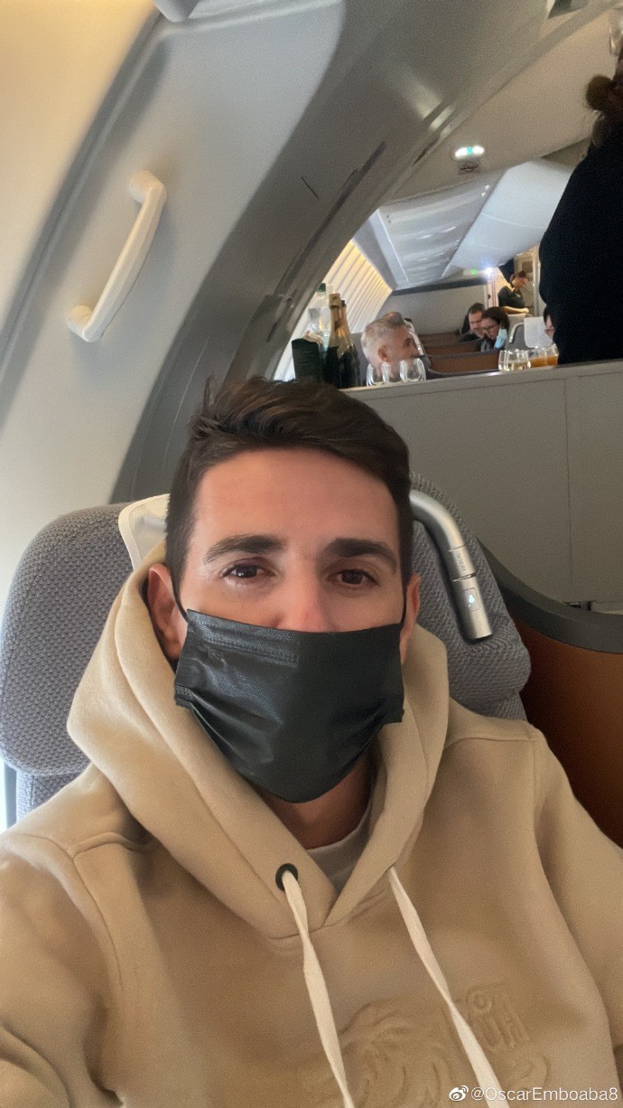奥斯卡在社交媒体上晒出自己正在飞机上的照片并写道:“回上海,稍晚见。”