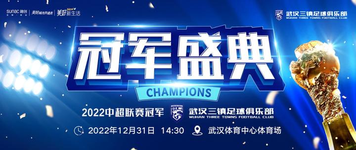 融创武汉官微消息,武汉三镇中超冠军庆典将于12月31日14:30进行。