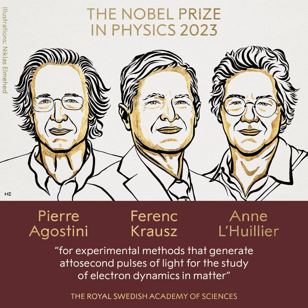 瑞典皇家科学院3日宣布,将2023年诺贝尔物理学奖授予皮埃尔·阿戈斯蒂尼 (Pierre Agostini)、费伦茨·克劳斯 (Ferenc Krausz) 和安妮·卢利尔 (Anne L’Huillier),以表彰“为研究物质中的电子动力学而产生阿秒光脉冲的实验方法”。