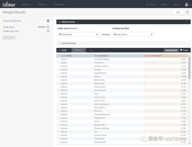 Looker 通过「合并结果」的概念支持数据混合。它像结果集之间的 SQL 连接一样工作,甚至跨数据库也是如此。