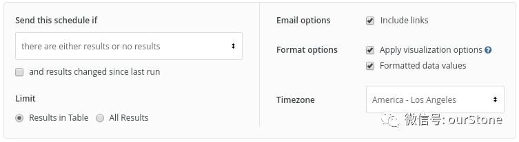 您甚至可以使用“高级”选项创建自定义警报,仅在结果集为空或自上次运行以来结果发生更改时才发送结果集。