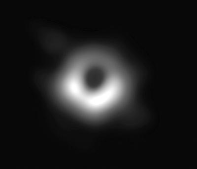 该图像揭示了室女座星系团中超大质量星系M87中心的黑洞。这个黑洞距离地球十分遥远,有5500万光年,黑洞的质量约为太阳的65亿倍。法国国家科学研究中心对这张照片的评述为:这张图片清楚地显示了一个圆形和黑暗中心区域的环形结构——它是黑洞的阴影,突出了辉煌的背景,这个影子是重力偏离光的组合,充满了关于这些迷人物体性质的信息,并允许研究人员测量黑洞的巨大质量。