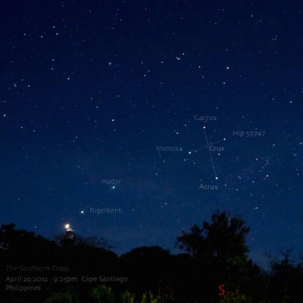 有导航星指向南十字座吗?看看这封邮件顶端的照片,由菲律宾的合资企业诺列加拍摄。同时看看上面这张图纸,注意这两个恒星,半人马座的参宿七和哈达尔。南门二也以半人马座阿尔法星闻名,是距离地球最近的星系,仅4光年多。