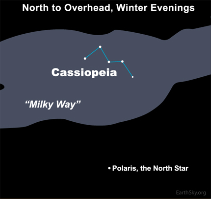 如果你能在你北边的天空中看见仙后座,那么南十字座此时正在你的地平线之下。仙后座的形状看起来像是字母M或者W。