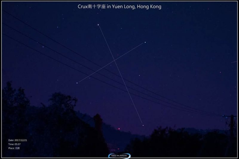 Matthew Chin在香港抓拍到十字架座—又名南十字座——于2017年12月21日