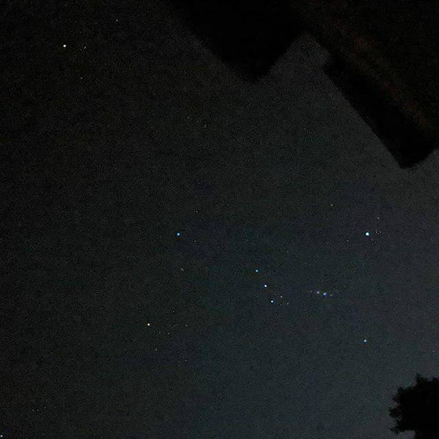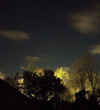 我给猎户座和金牛座拍了这张照片。参宿四(左边的亮星)不同寻常的黯淡引人注目。亮度最大时它本可以和毕宿五(接近顶端位置)媲美,而同时又略暗于参宿七(右侧)。不,这并不意味着它要爆炸。它是一颗变星,而且以前曾发生过深度变暗,但是它可能在10万年左右内都不会有爆炸的迹象。