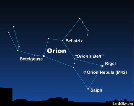 图解:参宿四的位置在著名的猎户腰带附近。