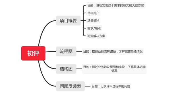 所以,我们会先理出结构图来,覆盖相关的功能点,可能碰到的页面,页面里面的关键字段和规则。虽然没有原型图来的直观,但大家脑海中对功能的雏形都有了了解,能做出方案的评估,这就达到了我们此次评审的目的了。