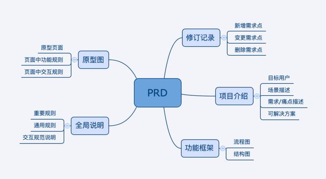 经过了初评的方案确认,就可以开始准备原型图了,详评时给出的是一份完整的PRD文档了,主要包含这几个方面的内容: