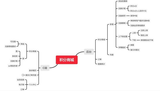 比如说这是部分积分商城的结构图:按照终端-模块-页面-字段-规则的层级来梳理。