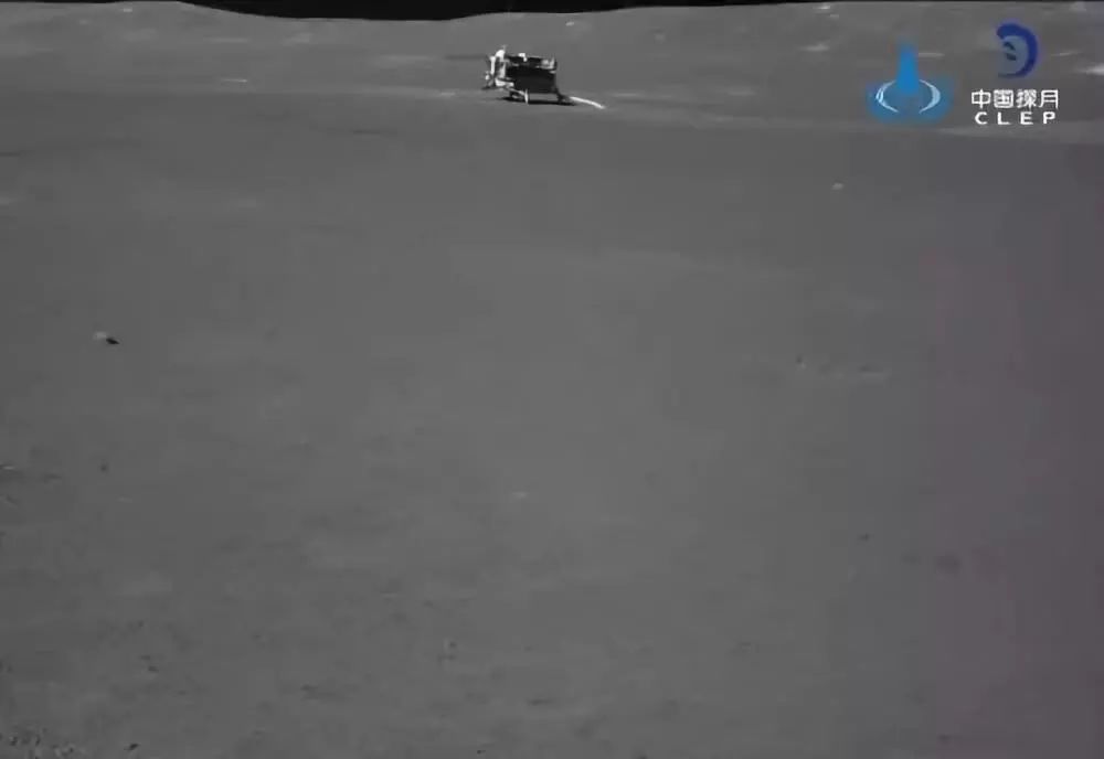 •2019年1月3日晚间,嫦娥四号着陆器与巡视器成功分离,“玉兔二号”巡视器(即月球车)顺利驶抵月背表面。着陆器上监视相机拍摄了玉兔二号在月背留下第一道痕迹的影像图,并由“鹊桥”中继星传回地面。