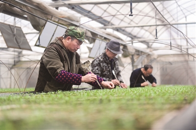 12月24日,湘潭市原种场蔬菜种苗中心石墨烯温室大棚,工作人员给辣椒幼苗间苗。该中心是湘潭市重点蔬菜种苗生产基地以及蔬菜基础科研基地,每年可培育种苗500万株。近年,中心研究推广漂浮育苗、石墨烯技术育苗等技术,搜集与保护地方蔬菜优良品种,服务于长株潭地区的蔬菜生产。