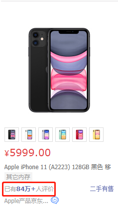 iPhone11 Pro是今天所有推荐机型中价格最高的,但是iPhone11系列却是某电商平台上到目前为止卖得最好的,其中iPhone11目前累计评价数量达到了84万。