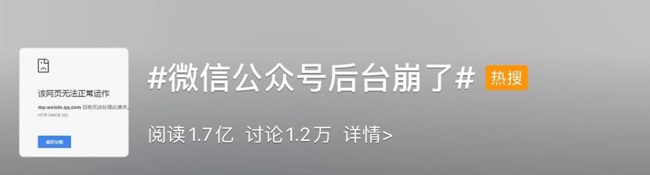 刚刚 微信公众号后台崩溃了 急坏了全国微信公众号小编 刚刚,腾讯微信团队回应:微信公众号后台出现故障,我们正在紧急修复。有任何进展,我们会第一时间告知。 来源:北京日报客户端 编辑:姜晶晶 流程编辑:王宏伟