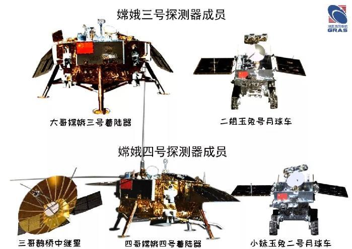 说起我们落月探测器家族成员那是个个都很了不起。大哥“嫦娥三号”和二姐“玉兔”代表中国首次实现了月面软着陆,他们于2013年12月15日成功登陆在月球正面的雨海区域,并开展了一系列的科学探测,取得了许多成果。绕月探测器家族的嫦娥一号和嫦娥二号是我们嫦娥探测器大家族了不起的先驱前辈,他们环绕月球飞行获得了许多珍贵的月面影像资料和科学数据,为我们落月家族登上月球打下了坚实的基础。