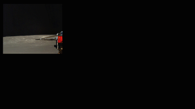 到下午15时7分的时候我们收到了来自地球的指令,一切准备就绪,我即将要踏上月球背面啦。首先我需要向转移机构开始缓慢移动,转移机构解锁正常,在四哥着陆器和月面之间搭起了一架斜梯,然后我就可以沿着斜梯缓缓地走向月面,22点22分我已经成功踏上月面啦!看看四哥用着陆器监视相机和地形地貌相机为我拍摄的照片,是不是很可爱?得意脸~