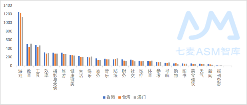 同时投放 2 个地区的产品数量更多,澳台有 3781 个、港台有 3969 个、港澳有 3996 个。