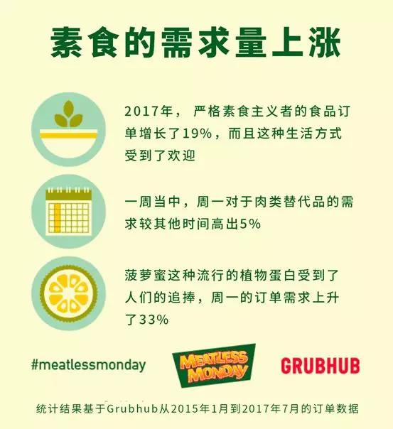 非营利计划 Meatless Monday 和美国外卖平台 GrubHub 联合证明了:肉类替代品的人气正日益增长。据分析,不仅仅是在工作日,人们对于人造肉菜肴的需求每天都在增长。