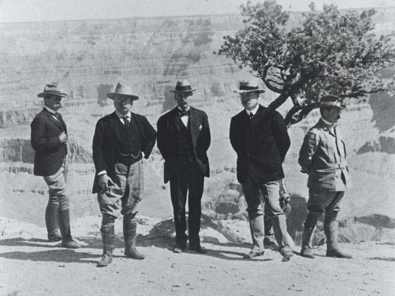 图解:1903年,西奥多·罗斯福总统(左二)在大峡谷南缘与同伴合影。来源:国家公园管理局