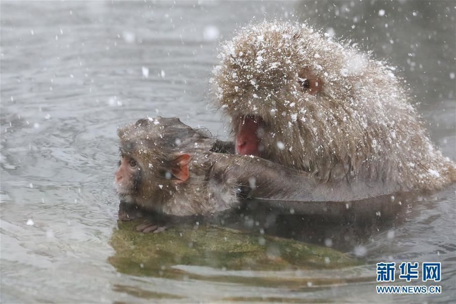 ●12月27日,在日本长野地狱谷野猿公苑,雪猴在享受温泉当日,日本长野县地狱谷野猿公苑大雪纷飞,该地区的野生雪猴来到此处的温泉玩耍嬉戏。猴子们享受的可爱姿态吸引了世界各地的游客前来参观拍摄。
